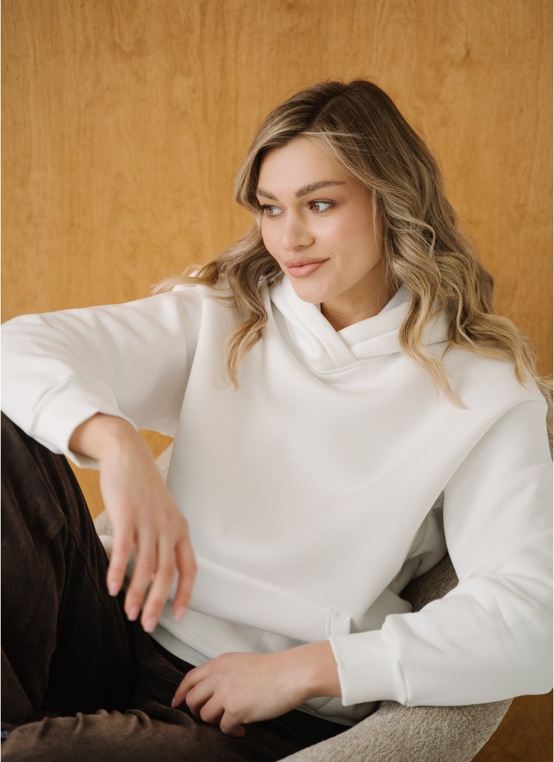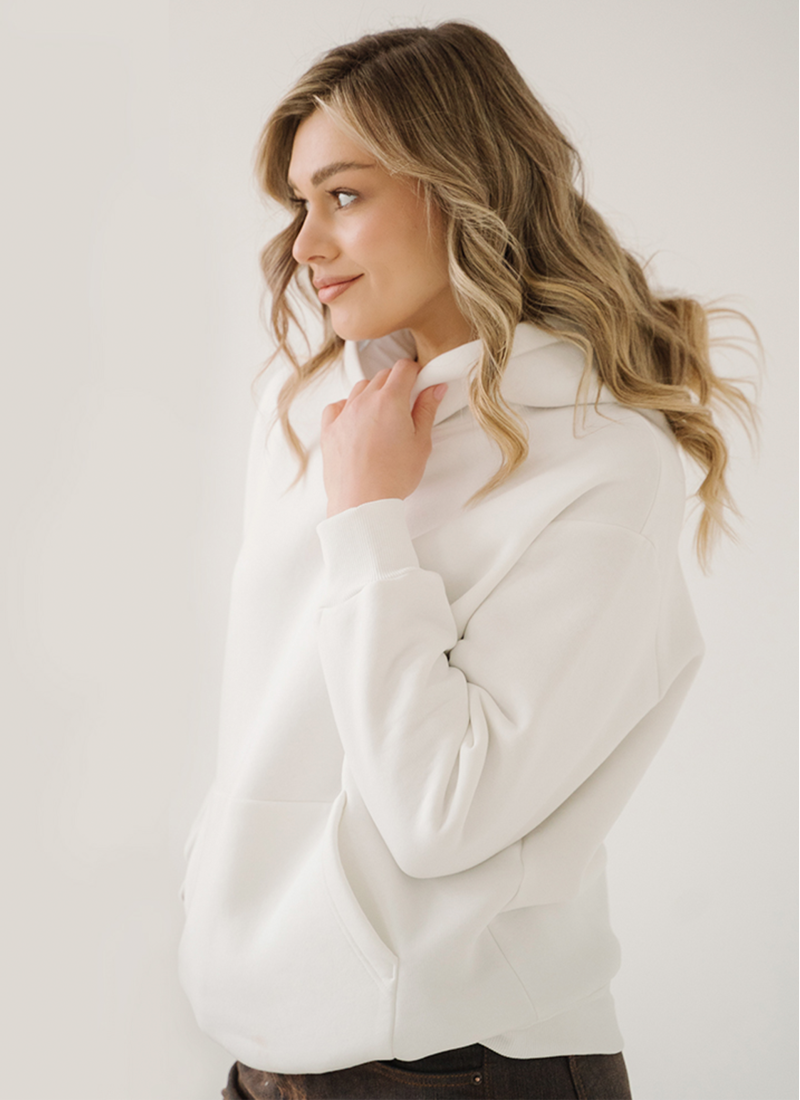 Женский худи DEA MIA свободного кроя — идеальный выбор для тех, кто ценит комфорт и стиль в повседневной одежде. Модель универсальна и отлично подходит для любого типа фигуры, не стесняя движений и обеспечивая максимальное удобство в течение всего дня. Изготовлено из мягкой и дышащей ткани с оптимальным составом: 55% хлопок и 45% полиэстер, что гарантирует долговечность и легкость ухода. Добавьте в свой гардероб уютный худи, который станет вашей любимой вещью на каждый день!