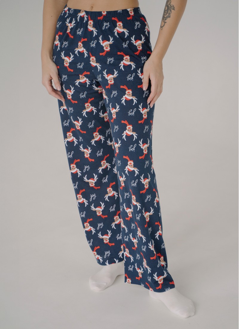 Свободные пижамные брюки DEA MIA средней посадки с мягкой и эластичной резинкой на поясе, из набивного трикотажного полотна с рисунком. Сделаны из 100% приятного к телу хлопка с аккуратно выполненными швами. Легкий, дышащий, гипоаллергенный материал, который не натирает и не раздражает кожу.