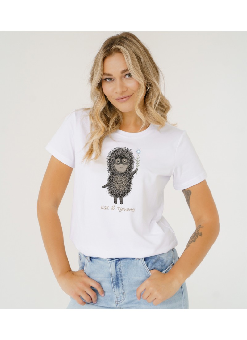 Футболка женская DEA MIA с принтом СОЮЗМУЛЬТФИЛЬМ "Ёжик в тумане", свободного кроя, короткий рукав. Свободный крой изделия подходит для любого типа фигуры, не сковывает движения, комфортен в повседневной носке. Изготовлена из натурального хлопка с лайкрой.