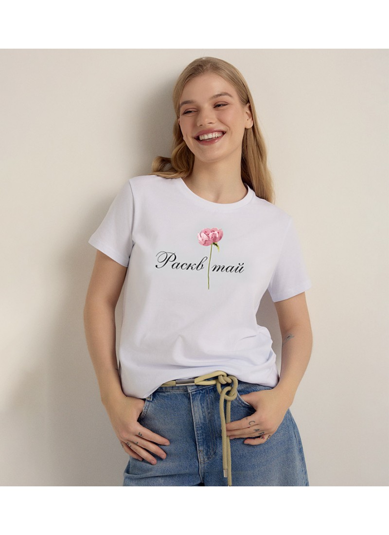 Футболка женская DEA MIA с принтом, свободного кроя, короткий  рукав. Свободный крой изделия подходит для любого типа фигуры, не сковывает движения, комфортен в повседневной носке. Изготовлена из натурального хлопка с лайкрой.