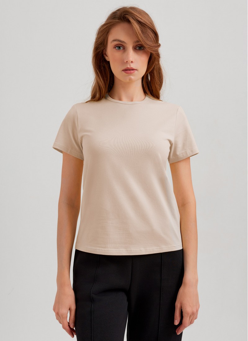 Фуфайка женская DEA MIA из однотонного трикотажного полотна с коротким рукавом. Горловина обработана бейкой.