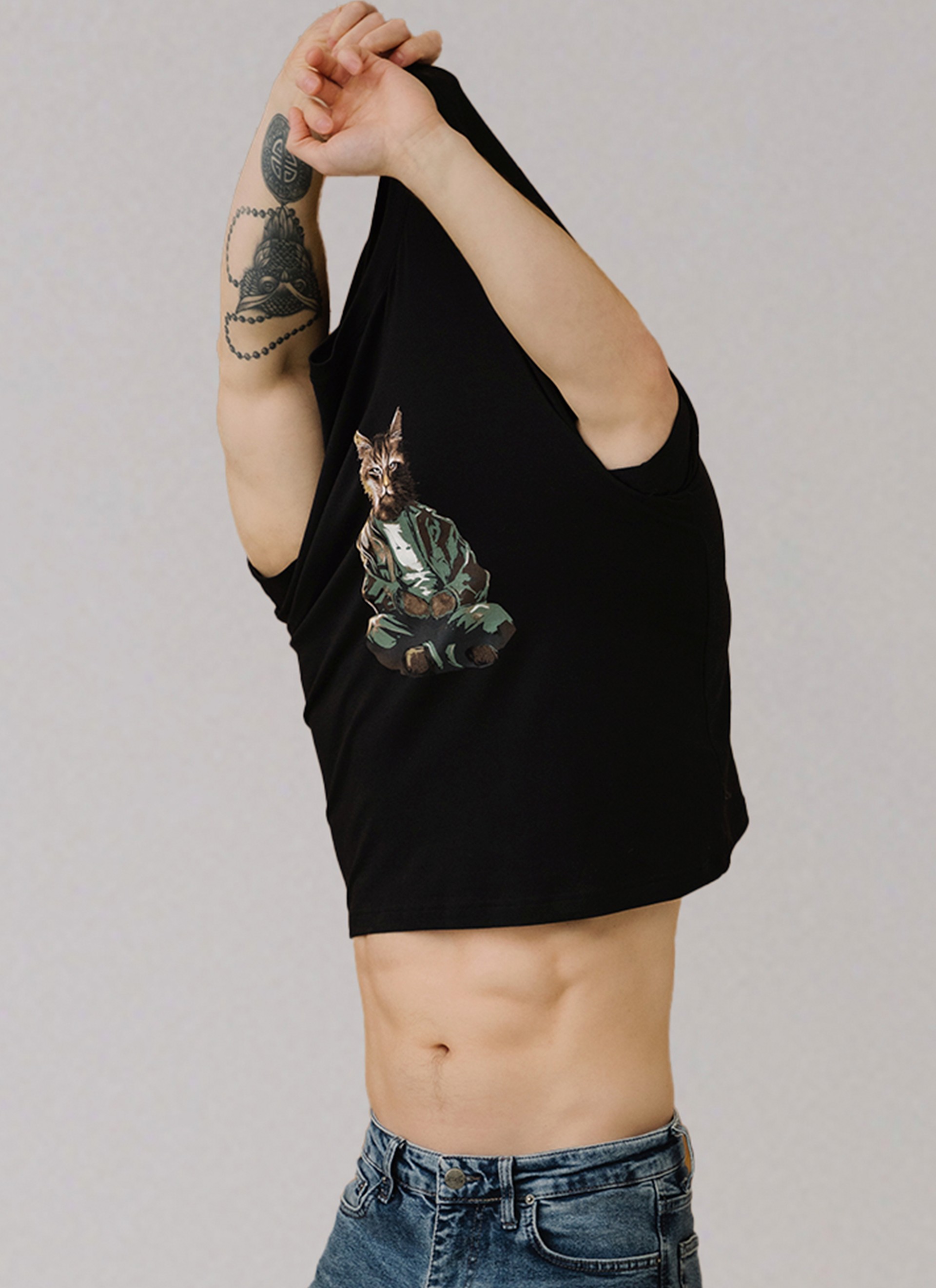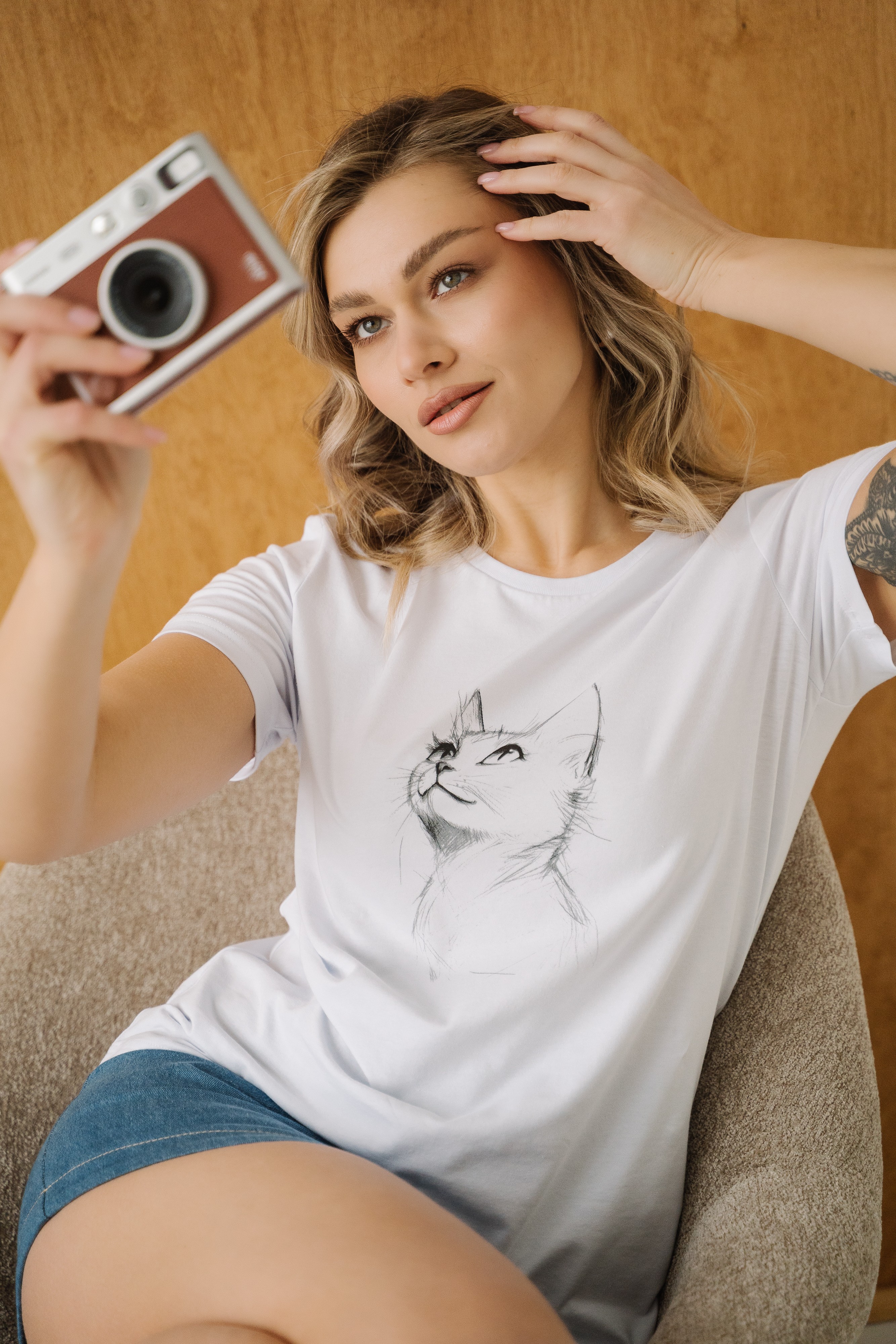 Котостиль. Футболки с милыми и дерзкими принтами добавляют образу лёгкости и кошачьей харизмы. Они притягивают взгляды и создают настроение с первого взгляда.
