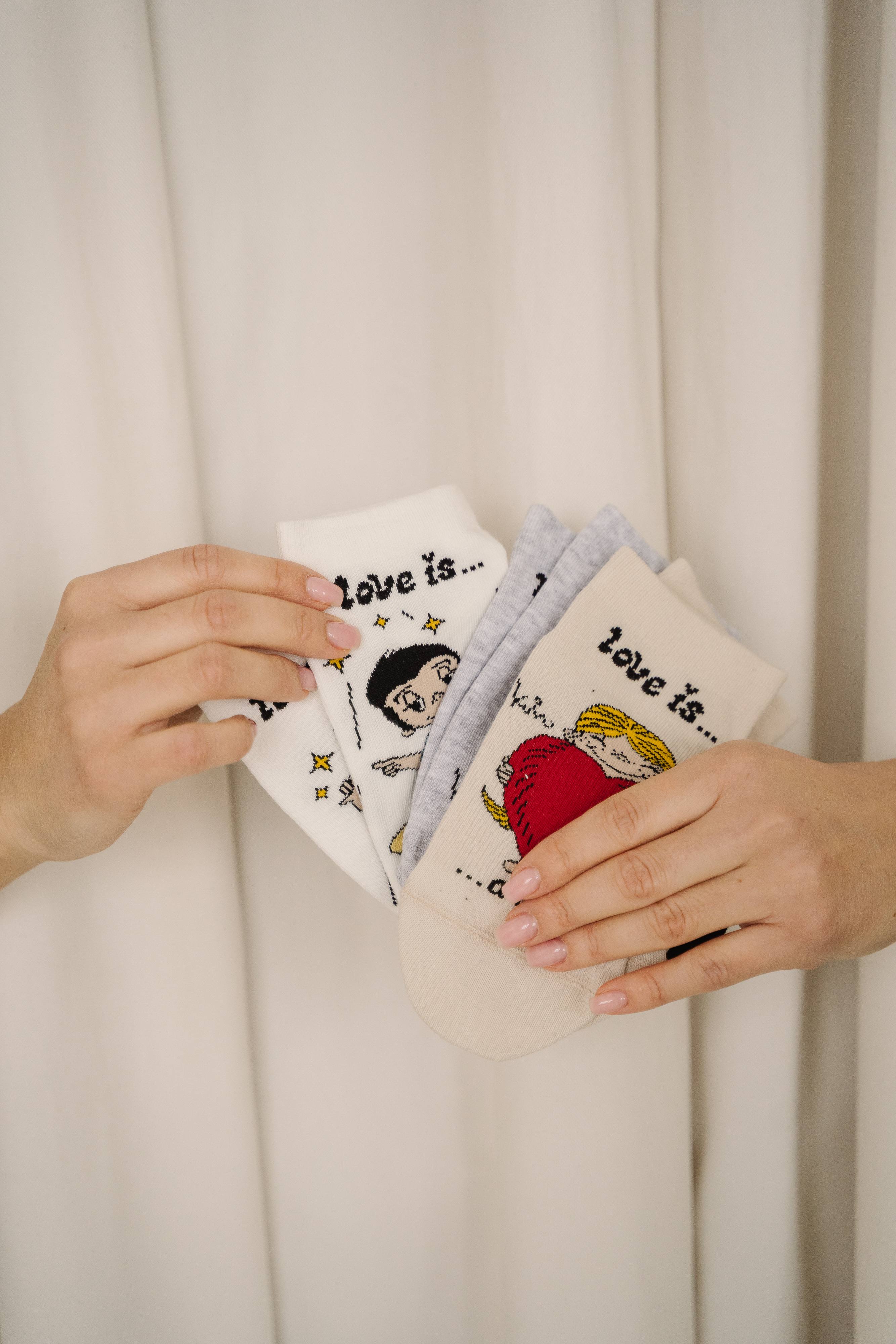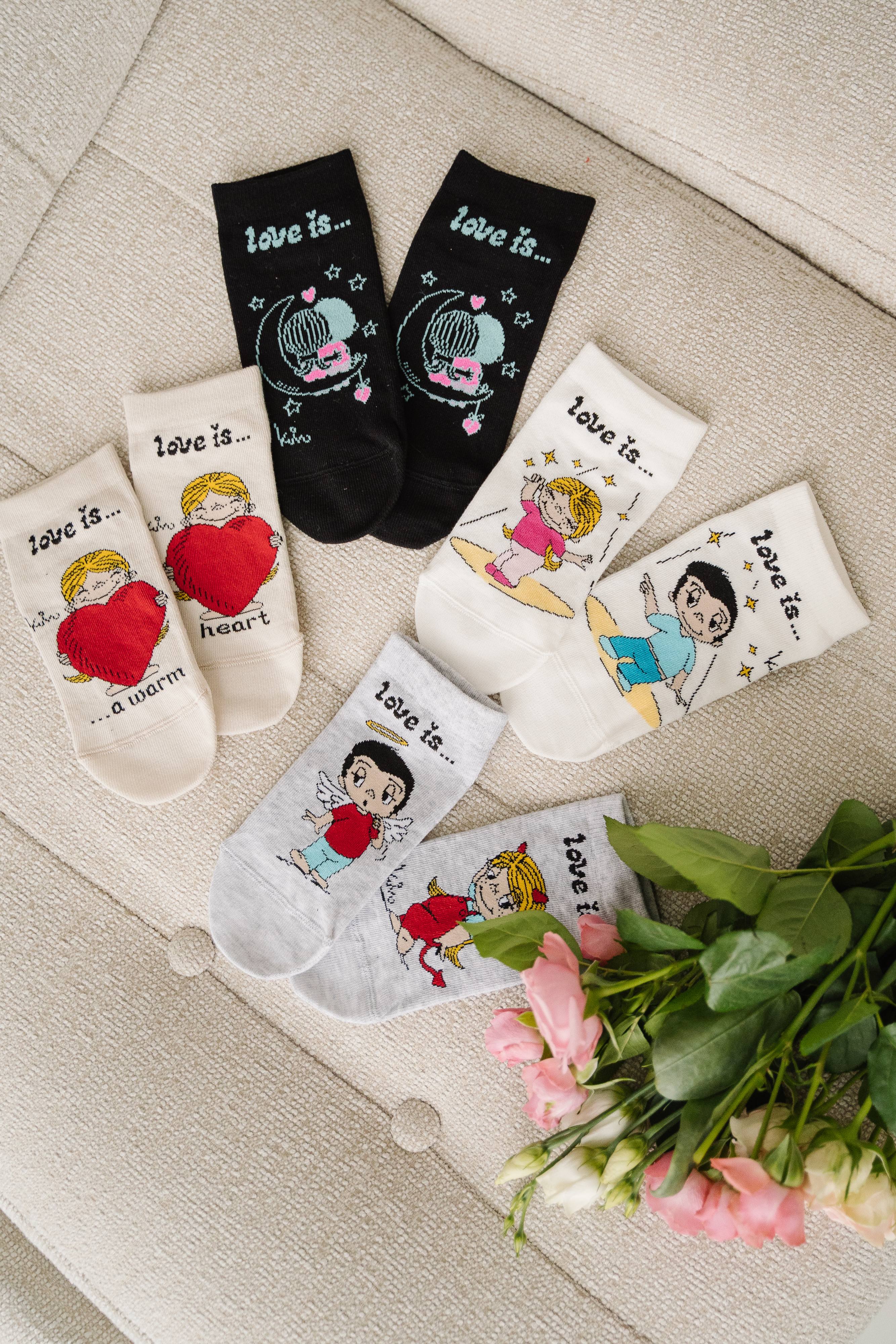 1. Боксы с носочками Love Is... Культовые вкладыши теперь на мягком трикотаже. Это готовый подарок в стильной упаковке для тех, кто ценит эстетику и добрые эмоции. Кстати, в коробочку «Love Is» можно вложить не только носочки этой серии, но и другие небольшие товары с полок наших магазинов — соберите свой уникальный бокс.