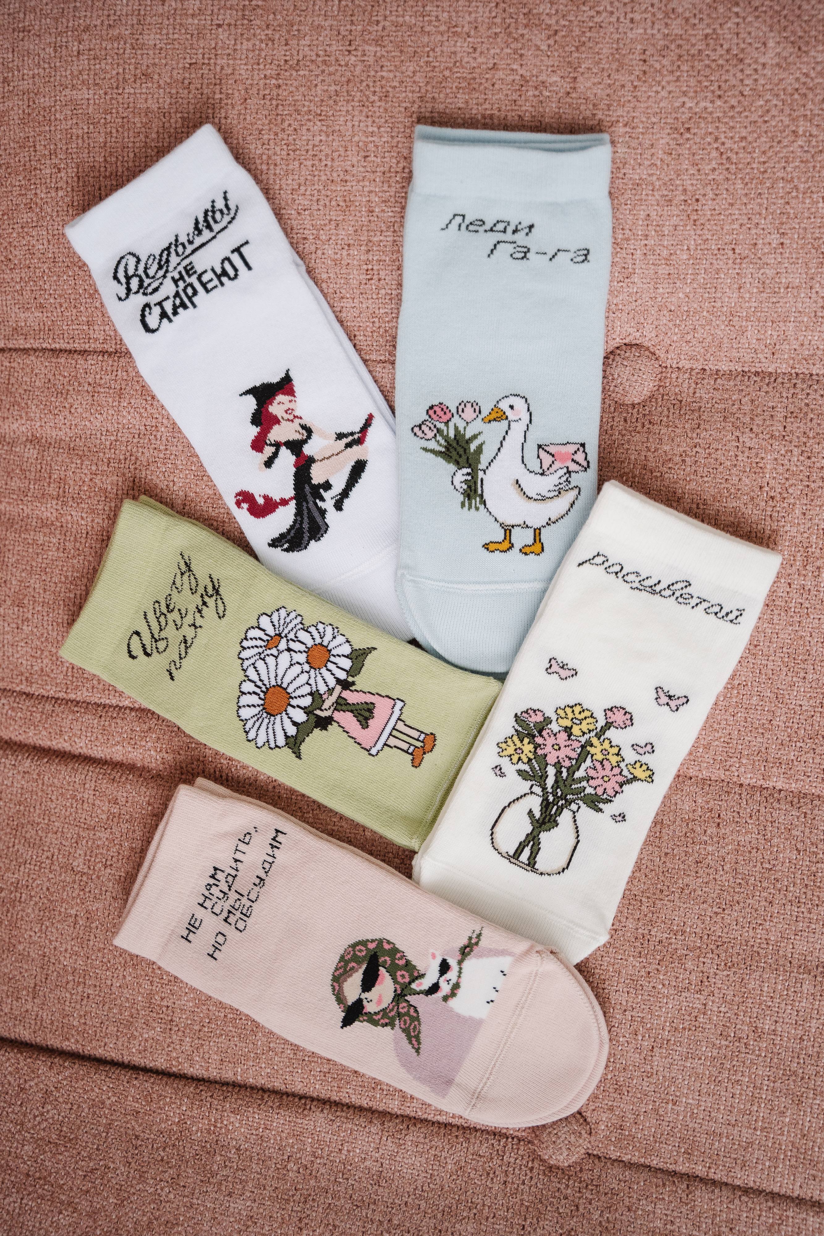 6. Цветочный софт-бокс. Базовые носочки+носочки с самым весенним принтом в подарочном оформлении. Внимание: их почти разобрали, так что это вариант для тех, кто не ждет до последнего дня, чтобы отправиться за подарками.