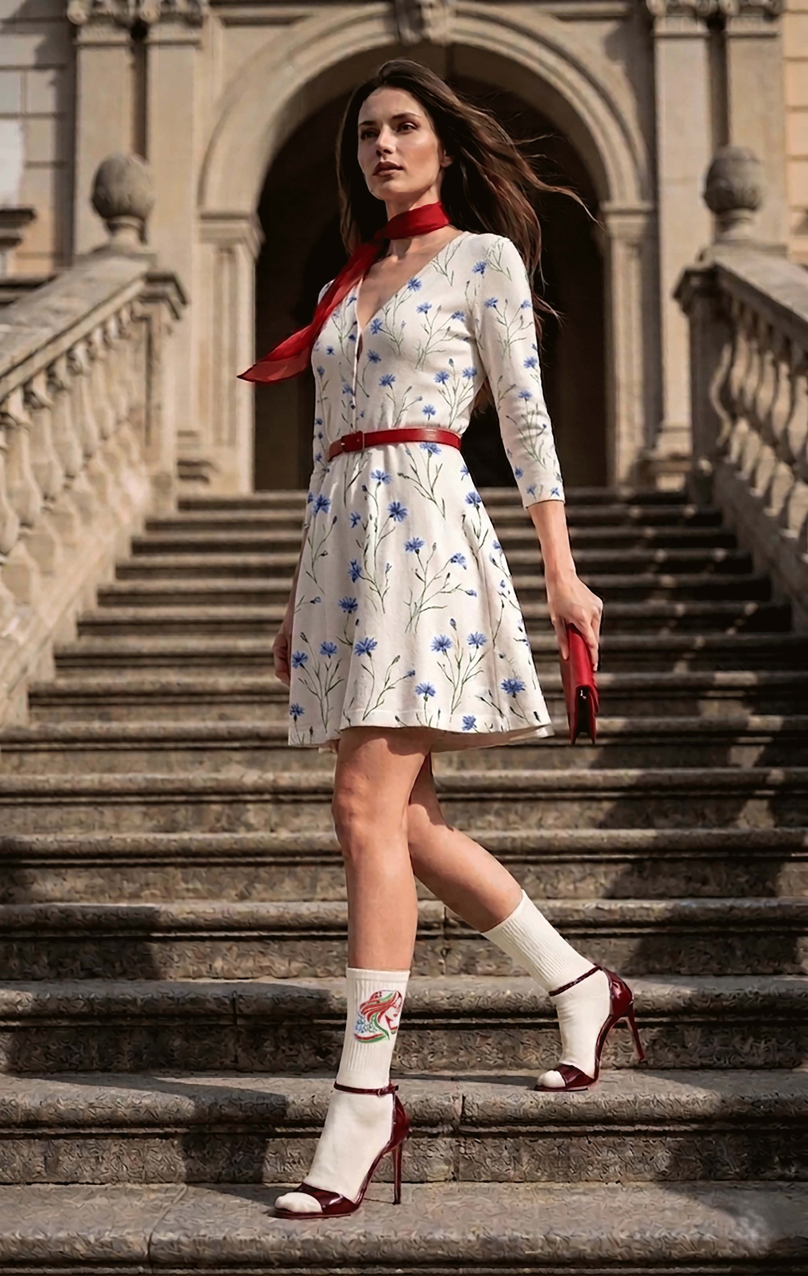 Наше фото с моделью, смело шагающей по лестнице исторического замка, идеально передает дух времени. Мы не просто создаем одежду, мы создаем историю о женщине, которая сегодня пишет будущее Беларуси.