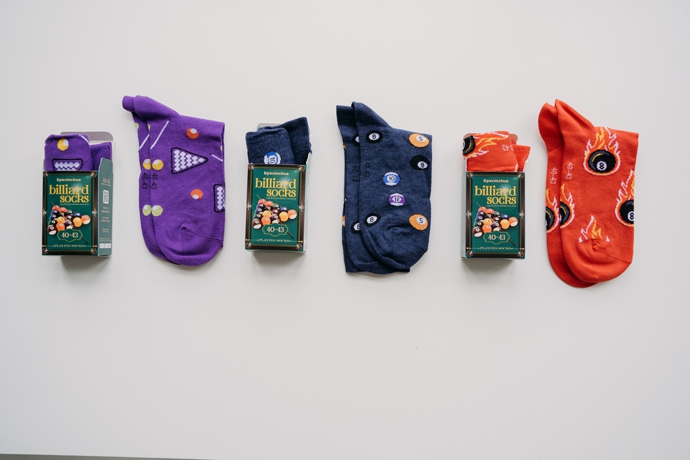 В яркой унисекс «игральной» коллекции ( PLAY COLLECTION) появилось продолжение в виде коробочек с носками на тему биллиарда и шахмат, «Billiard» и «Chess».